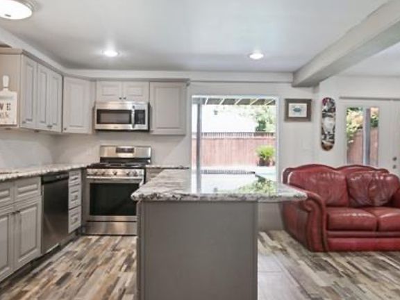Walk out your french doors to a beautiful backyard and garden area with a large covered back patio, hot tub, and swimming pool. This back yard space is fully fenced and gated with a combination lock and is only used by the 3 units in this home and is considered a private, adult only, 420 friendly space.