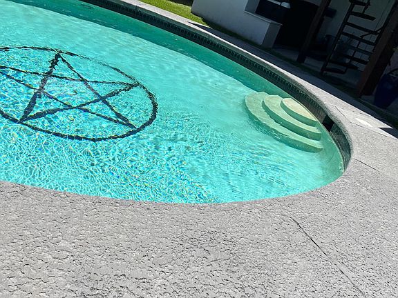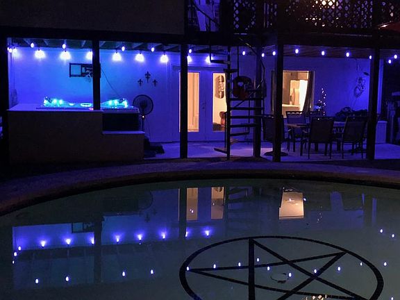 Step outside your kitchen double glass sliding door onto your large covered back balcony and relax with the view of the pool or step down the stairs and enjoy the hot tub, large covered back porch, stripper pole, or pool. The back yard is fully fenced and gated with security combination locks for safety and privacy. The backyard also includes a historic rock and roll swimming pool. The large circular pool with the tiled pentagram (one of the bands logos) was built by the previous owner, the lead singer of the band Pantera. Enjoy a fully updated home with convenient parking and a bit of rock and roll history.
