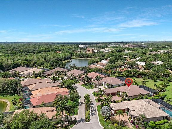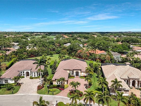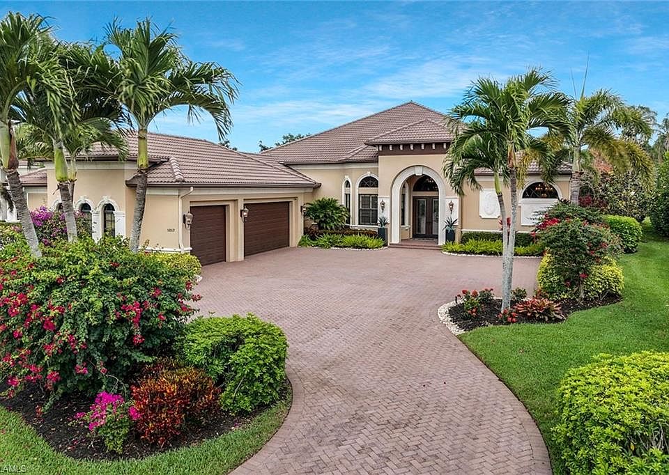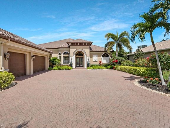 Step into the epitome of luxury and sophistication with this stunning custom estate home, nestled in the prestigious, guard-gated Hammock Isles in The Vineyards, a highly sought-after community in Naples. This exceptional home offers over 3,700 sq. ft. of elegant indoor living space and an impressive 2,500 sq. ft. of outdoor living, perfect for both relaxation and entertainment. Designed for comfort and convenience, this 4 bedroom +den, 5 bath home features a 3-car garage, oversized, paved driveway, all ensuite bathrooms plus powder room/pool bath, coffered and tray ceilings with 8-inch crown molding, marble flooring throughout and Sonos Surround System. The home is adorned with exquisite chandelier lighting, stainless steel GE Cafe appliances, plantation shutters, granite counter tops in the kitchen and laundry room, marble counter tops in all bathrooms, while the primary suite features his and her walk-in closets and separate water closets; hers with a bidet. Impact windows, including rolldown hurricane shutters on the lanai, provide peace of mind, while smart home features such as Ring Doorbell and Nest indoor/outdoor security system complete the experience. Enjoy movie nights in your very own media room, or relax in the beautifully landscaped outdoor area, which includes a heated pool and Infinity spa, spacious outdoor kitchen, deluxe lanai furnishings, and multiple dining areas, perfect for entertaining family and friends. The oversized .81-acre lot, enhanced with upscale landscaping and lighting, adds to the home’s privacy and charm. The Vineyards Country Club offers two 18-hole golf courses, a racquet center with pickleball and tennis courts, a wellness center, spa, and clubhouse with both upscale and casual dining options, along with a variety of social clubs and events. While social memberships are available, golf memberships are currently waitlisted. Additionally, Vineyards Community Park provides extra recreational options with sports facilities and walking paths. This home is ideally located with close proximity to Physicians Regional Hospital, pristine beaches, world-class shopping, dining, and golf, plus easy access to I-75 for quick trips to the airport or day excursions to Marco Island. This exquisite estate blends luxury, comfort, and convenience in one perfect package. Don’t miss the chance to make this dream home yours!