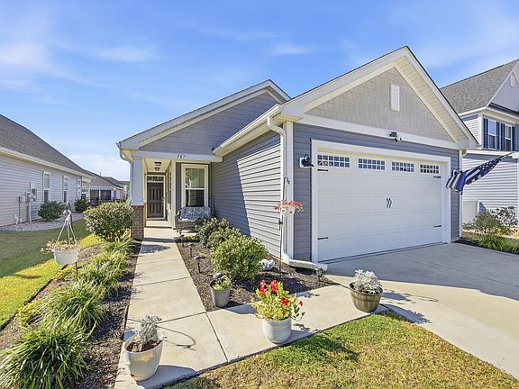 Welcome to 587 Cascade Loop, a charming 3-bedroom, 2-bath home in the highly sought-after Bridgewater community! This beautifully designed home features an open-concept living area, tray ceilings in the primary suite, and laminate flooring throughout with cozy carpet in the bedrooms. The primary bathroom is thoughtfully designed with a walk-in tiled shower and double sink. Enjoy the screened, covered back patio complete with a fireplace. Bridgewater homes come equipped with modern smart-home technology, including gas heat and cooking, a tankless gas water heater, doorbell camera, and digital front door locks - which are accessible from your smartphone. This community boasts a recreation area with lots of community events, large community pool, large Gym for exercise, and tennis courts. Community also features a walking path around the pond and two dog parks/run. Don’t wait—schedule your showing today!