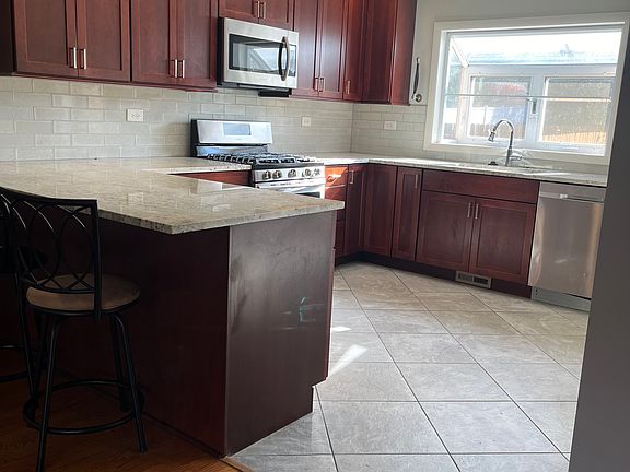 Welcome to this spacious 4-bedroom, 2-full-bath home in Lisle School District 202. It is situated on a large lot in a quiet neighborhood and is within walking distance of the Metra station and downtown Lisle. The kitchen features stainless steel appliances, quartz countertops, ceiling-height cabinets, a breakfast bar, and a bay window in the kitchen that looks out into the large backyard. Two bedrooms are on the first floor, and two are on the second floor. The house has plenty of storage and closet space, a huge mudroom, plus an unfinished basement. There is also a great outdoor space with a deck and fenced-in area.
