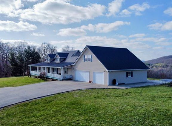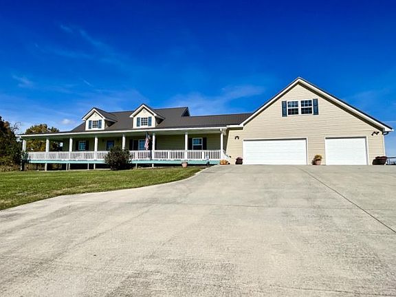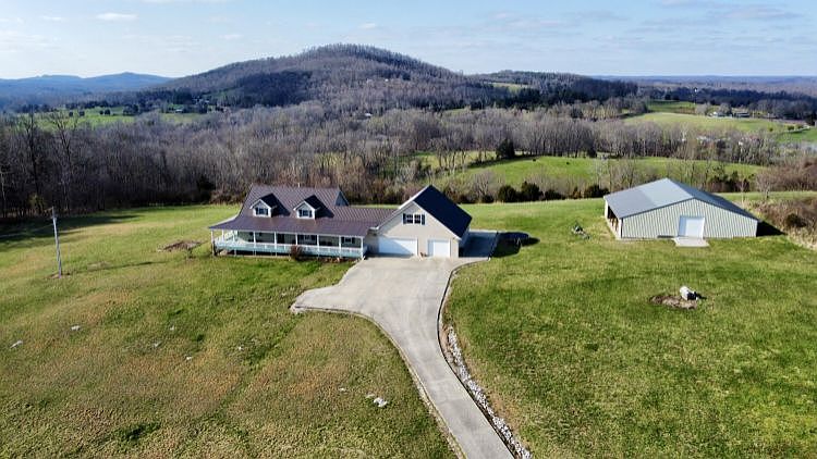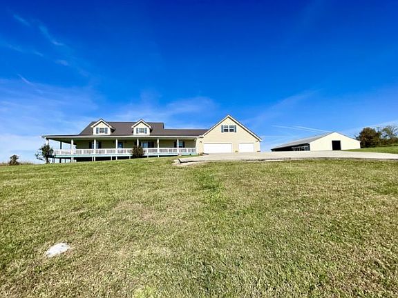 WOW, check out this Jaw-dropping panoramic view!!! You will simply fall in love with this beautiful farmhouse, offering a wrap-around porch with some of the most breathtaking landscaping you could imagine! Situated on 5 acres, nearly 6, 000sq ft under roof (over 4, 500sq ft finished living space), and a massive 2, 700sq ft barn this home simply offers it all. The barn has open bays on each side and then double garage doors! The home offers a huge 1, 300sq ft attached garage with a large bedroom and full bathroom above it, making it the ideal in-law suite or teen space! Inside the main level of the home it features vaulted ceilings, a beautiful gas burning fireplace, 3 bedrooms and 2 full baths! Upstairs offers 2 more additional bedrooms and 1 full bath! Whether you are washing dishes, eating dinner in your spacious dinning room and hanging out in one of the bedrooms, you can enjoy the spectacular view from any window in the home! This is truly a show stopper! The roof was replaced in 2020, the home has new appliances, fresh paint and the washer dryer will stay! Don't miss a chance on owning such a unique piece of property!