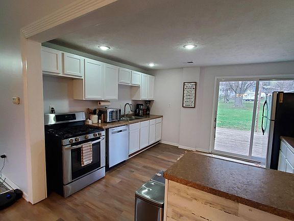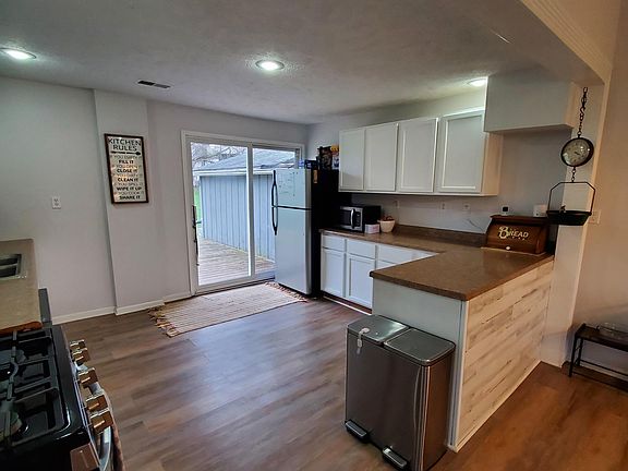 Come see how much more you can get by buying this home instead of renting! This home is a for the hobby enthusiast if you would need an oversized 4 stall garage with plenty of storage and work space, pull down stairs to an attic and access to the fenced backyard! The home has 2 bedrooms and a full bath with laundry room. Good size kitchen with appliances included with sliders to backyard. Open living to dining area and kitchen. New flooring throughout. Updated kitchen cupboards and counter. Updated paint throughout. Sit out on your deck and relax in your large totally fenced back yard! So much more you will get instead or renting! Come see today!