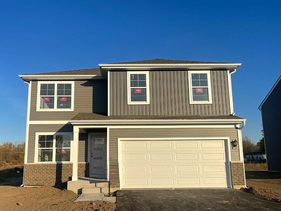 Welcome to THE BELLAMY, a beautiful New Construction 2 story home located in Hebron IN in the Park Ridge community. This home will be ready for FALL move- in ! This Bellamy plan offers 4 bedrooms, 2.5 bathrooms, 2-car garage, a basement, and 2,051 square feet of living space. Imagine walking into your new home, as you enter through the front door you will see a study/ flex space flowing to the foyer that has ample wall space for decor. As you walk down the hallway, you will see the guest bathroom and a coat closet and access to the stairs leading you to the second floor. This open concept floor plan flows seamlessly allowing the heart of the home to feel functional. Entertaining will be easy in this open-concept kitchen and family room layout with a large island with an overhang for stools and designer cabinetry. Additionally, the kitchen features modern stainless-steel appliances, quartz countertops, and easy-to-maintain luxury vinyl plank flooring. Enjoy your private getaway with your large primary bedroom and en suite bathroom with a raised height dual sink, quartz top vanity, and walk-in shower and glass shower doors. Convenient walk-in laundry room, 3 additional bedrooms with a full second bath and a linen closet complete the second floor. All homes include Smart Home Technology, featuring a smart video doorbell, smart Honeywell thermostat, smart door lock, Deako smart light switches and more. Photos are of similar home and model home.