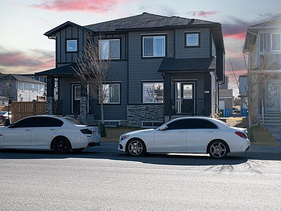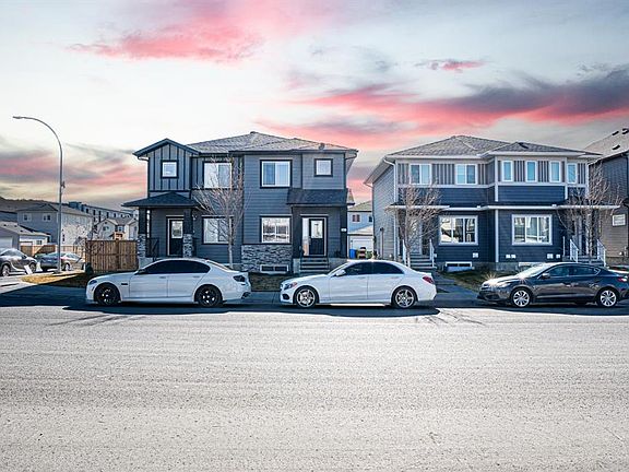 | 6 BEDROOMS & 4 FULL BATHS | MAIN FLOOR BED + FULL BATH! | 2-BEDROOM ILLEGAL SUITE | 9-FT CEILINGS | UPDATED INTERIOR, ROOF & SIDING | RECENTLY REFRESHED! READY TO MOVE IN! DUPLEX RIGHT BY THE CORNER | Welcome to 587 Cornerstone Ave NE, a REFRESHED duplex set right beside the corner lot in a PRIME Cornerstone location. Situated in a prime location, this home is just moments away from community LAKE, a large park/playing FIELD, schools, playgrounds, shopping, Chalo! FreshCo, and only minutes from the airport. The main level offers a clean, functional plan with 9-FT CEILING, MODERN feature-wall finishes, and a bedroom with a FULL MAIN bathroom—ideal for guests, ELDERS, or multi-generational living. Upstairs you’ll find three bedrooms and two full bathrooms, including a PRIMARY suite with a 5-PIECE ENSUITE (double sinks, soaker tub, tiled shower, toilet) and a walk-in closet. Upper-floor LAUNDRY adds everyday convenience. The SIDE ENTRANCE TO BASEMENT lower level is finished with a 2-bedroom illegal basement suite and SEPARATE LAUNDRY—a practical Live Up / Rent Down option or extra space for extended family. Exterior upgrades include roofing and siding repairs (hail work completed), a front porch, and a rear GAS line for BBQs. Interior updates and fresh paint make this move-in ready. A well-located, upgraded home offering space, flexibility, and value in NE Calgary. This one won’t last long—book a showing now!