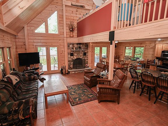 - Features: Vaulted Ceiling(s), Wood Burning Fireplace