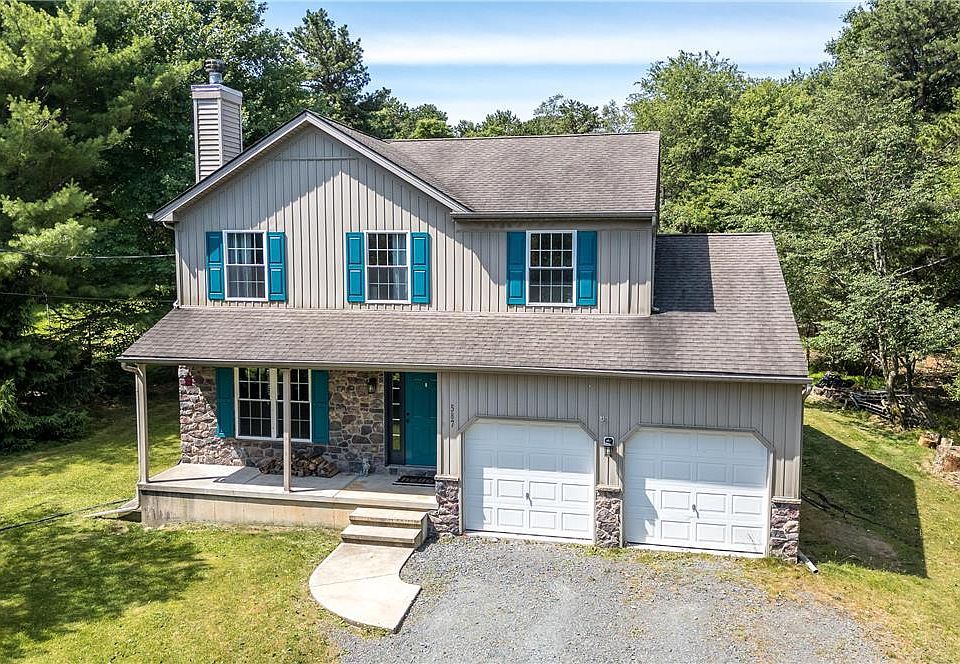 Enjoy the beauty of Poconos fall foilage, come check out this house and imagine experiancing it year round. Rarely will you find a traditional style house on a 1/2 acre lot in this desirable location. Built in 2007, this 3/2.5 home epitomizes open-concept design, perfect for modern living. As you enter, you're welcomed into a spacious front LR featuring a stone fireplace & recessed accent lighting. This room seamlessly flows into a versatile space, ideal for a formal DR or a 2nd LR, w/ views of the rear yard. The heart of the home is the eat-in kitchen w/ abundant cabinets, recessed lighting, new SS appliances, an island w/ breakfast bar, pantry, & coffee bar. The 1/2 bath & 1st floor laundry offer convenience, located adjacent to the large 2-car garage. Upstairs, the huge master suite features a vaulted ceiling, walk-in closet, & a soaker tub. The finished basement provides room for a movie theater or game room, plus there’s a newly built clubhouse for kids. Outside, enjoy serene natural surroundings teeming w/ wildlife. Located minutes from schools, it’s near the Pocono Raceway & numerous hiking trails & campgrounds. Recent updates include new appliances, a fire-pit area, plus a lot more. Whether you're seeking a primary residence or a vacation home near Pocono attractions, don’t miss out on this nearly new gem.