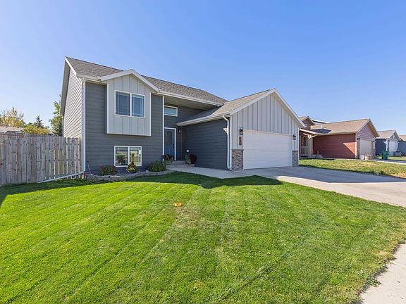 Listed by Debbie Malott, CENTURY 21 ClearView Realty, (605) 391-2856. Beautiful home close to Douglas Schools and Ellsworth AFB. This 4 bedroom 2 bath home is truly move in ready. Upstairs is an open floor plan with stone counters in the kitchen, pantry and plenty of counter space. Living room is large and open as is the dining area. 2 nice sized bedrooms and full bath. The backyard is fenced and has a sprinkler system. Nice deck with stairs and the yard is wonderfully manicured back and front. Downstairs has a lovely family room with gas fireplace, 2 more bedrooms and full bath. This is a floorplan everyone will appreciate!
