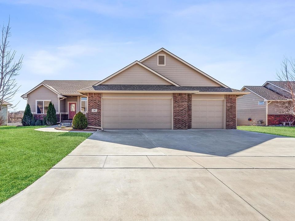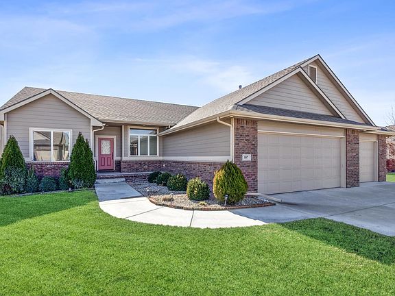 Don't miss out on the opportunity to own this great home located in the sought after location of Auburn Hills in the Goddard school district. This home is a blank canvas and ready for your creative touch. This open concept home boasts a substantial living area making it ideal for hosting family events or entertaining friends. The large windows in the dining and living rooms let in lots of natural light and allows for nice views of the beautifully landscaped backyard and deck. The kitchen has a walk in pantry, a breakfast bar, and appliances that have been gently used! Also on the main floor is a large master suite with a wonderful ensuite. This bathroom will make getting ready a dream. Oversized shower , walk-in closet, and large vanity all connected to the laundry room! Who doesn't love that? The second main floor bedroom has easy access to a full bathroom and could also be used as an office or craft room, possibilities are endless. The walk out basement features the third finished bedroom and bathroom, and is framed for additional bedroom and family room. Come see this home today and make it yours!