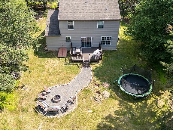While enjoying the beauty of Poconos fall foilage, come check out this house and imagine experiancing it year round. Rarely will you find a traditional style house on a 1/2 acre lot in this desirable location. Built in 2007, this 3 bed/2.5 bath home epitomizes open-concept design, perfect for modern living. As you enter this beautiful home, you're welcomed into a spacious front LR featuring a stone fireplace, recessed accent lighting, & hardwood floors. This room seamlessly flows into a versatile space, ideal for formal dining or a second living area, with stunning views of the expansive rear yard. The heart of the home is the eat-in kitchen, boasting abundant cabinets with crown molding, recessed lighting, new stainless-steel appliances, a breakfast bar, pantry, coffee bar, & generous countertop space. Nearby, the half-bath & first-floor laundry offer convenience, located just off the kitchen & adjacent to the entrance to the large 2-car garage. Upstairs, the huge master suite awaits, featuring a slightly vaulted ceiling, a walk-in closet, & a luxurious soaker tub with his & hers sinks. The finished basement provides additional living space with room for a movie theater, game room, or man-cave, plus it comes with a newly built clubhouse room for the kids. Outside, enjoy serene natural surroundings teeming with wildlife. Located minutes from schools, it is near Jim Thorpe, the Pocono Raceway, & numerous hiking trails & campgrounds. This home offers both tranquility & accessibility to local attractions. Recent updates include new appliances, garage doors with openers, a fire-pit area with a gravel path, plus more. Contact your agent for the Sellers Disclosure & Supplementary documents on the MLS for more details on features, the area, & what the current owners love about this exceptional property. Whether you're seeking a primary residence or a vacation home near Pocono attractions, don’t miss out on this nearly new gem