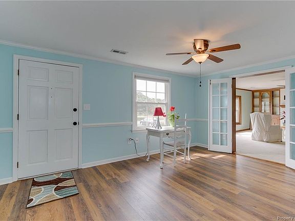 Great value for this immaculate ranch style home with a cottage feel on 3 parcels totalling 1.5 acres and just a short walk to a sandy beach on the Chesapeake Bay. Bright and freshly painted with a beautiful new custom kitchen featuring high end appliances, white quartz LG HI-MAX countertops, and a reverse osmosis system installed at sink. Top grade wood vinyl Mannington floors throughout most of the home allow for easy upkeep and custom window treatments add a quality touch. There is a generously sized living room with gas fireplace, custom cabinets and bay window with southern exposure. An asphalt driveway circling around the rear of the house provides convenient access to the oversized 2 car garage, potting/storage shed and nicely landscaped yard. Large trex deck off kitchen and dining room make for easy grilling and dining or just lounging. Sellers are motivated and will pay first year flood insurance which has been quoted aprox. $575/yr. House was raised in 2007. This home is spotless and reflects the owners loving care for both inside and out. There's no work to do here, just move in and enjoy!