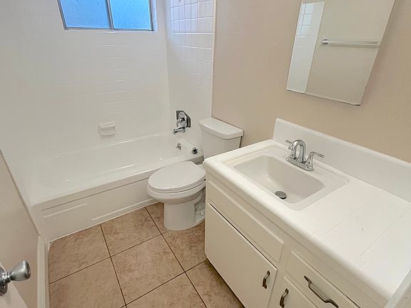 Amazing 2-bedroom, 1-bathroom upstairs standalone unit with a large private outdoor space. This unit features its own large, private, wraparound patio. Enjoy plenty of privacy since it's a standalone unit with no shared walls. The unit includes fresh paint, lush carpet, custom wide baseboards, wall AC, and ceiling fans. The community offers a lush courtyard and a quiet atmosphere. There is an on-site laundry room, and a 1-car garage is available for $35/month. TWO WEEKS FREE PROMOTION! Utilities are a small fee of $25 per month per person for water, sewer, and trash. Electric and gas are not included.