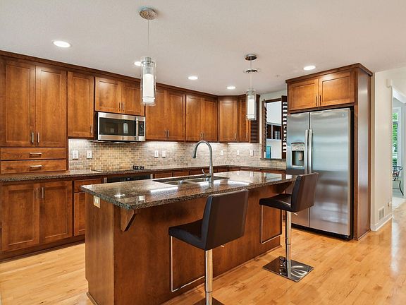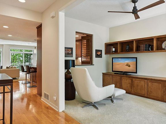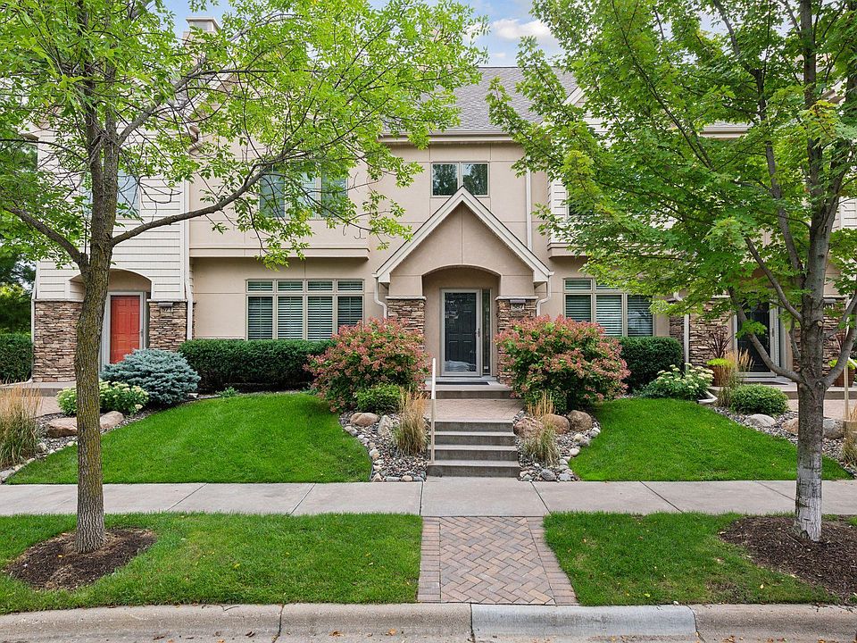 Impeccable Ron Clark townhouse (a previous model) shows like new! Hardwood floors throughout entire main floor (including under carpet). Existing den can be easily furnished as an office or formal dining room with pass-thru opening to kitchen. Private in-unit stairway to 2 underground dedicated & heated parking stalls. Improvements include: New 2-zone furnace and air conditioner (2021); water heater (2018); water softener (2022); all kitchen appliances new in 2021; stacked washer & dryer (2017); 3 west facing windows replaced (2023); new roof & gutters (2022). Neighborhood walking path, walking distance to several restaurants, Trader Joe's, coffee shop, and Oberlin Park (play equipment, grills, picnic area/shelter, tennis courts, walking/biking trails). 15 min to MSP Airport! Only minutes to 394, 494, 169. 2 dogs welcome!
