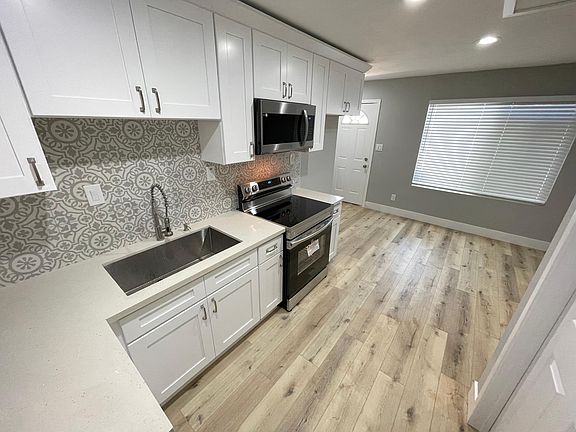 Units address is 5872 Sandoval, entrance is at the right side through wooden gate. Welcome to your cozy 1-bedroom, 1-bathroom sanctuary nestled in the Riverside, CA area near Jurupa Valley. This charming home offers a perfect blend of comfort and convenience. The well-equipped kitchen features a range and microwave, making meal preparation a breeze. With a stackable washer and dryer included, laundry day becomes a hassle-free experience. The inviting bedroom provides a peaceful retreat, while the nice bathroom adds a touch of luxury to your daily routine. Shared parking ensures easy accessibility, while the absence of a garage allows for more communal outdoor space. Enjoy the convenience of nearby amenities and the tranquility of a residential neighborhood. Experience the best of both worlds with Riverside's urban offerings and Jurupa Valley's suburban charm. Whether you're relaxing at home or exploring the surrounding area, this residence offers the perfect combination of comfort and location. Don't miss the opportunity to make this delightful home yours. Home is pet friendly, limits apply. Deposit and pet rent required. Requirements: Credit must be 600+ 2.5 x rent to income ratio No Evictions Rental history preferred. First month's rent and security deposit equal to first month's rent is required regardless of move in date, rent is due on the 1st of every month, the following month would be prorated depending on move in date. We use Rhino to offer flexibility of options for the security deposit. Please inquire. All adults in the household must submit an application for credit and background check purposes. We prioritize applicants that have completed in person tours of the rental.