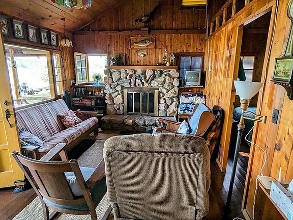 Sold to a reserved buyer. Charming log cabin on all sports Clear Lake. This original cottage brings back all the childhood memories of summers at the lake. Small but adorable the interior is open with vaulted ceiling and fieldstone fireplace. Two bedrooms and half bathroom. Screened in porch adds extra living area and the large covered carport is convenient for cars or to store a boat. Beautiful lake views and nice sandy beach.