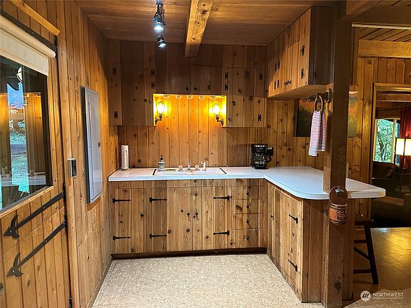 Stepping inside "Bob's Cabin" is like opening an aromatic cedar chest. This nostalgic Greenwater home is nicknamed after a former owner who was a master wood-worker and high school shop teacher. Here you'll enjoy simple mountain living tucked into the trees above the Greenwater river. Sold completely furnished, the property has been a popular nightly rental w/ two loft bedrooms that sleeps six comfortably in beds. Cozy living room, efficient kitchen, dining room and main level 3/4 bath. Covered entry porch w/ new composite decking, metal roof. Covered back porch with hot tub overlooking the river provides total relaxation after a day in the mountains. Level .43 acre lot. 5 min walk to shops & pub. 18 miles to Crystal Mtn Resort.