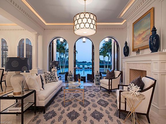 H.14625 - British West Indies Masterpiece - This Grand Estate is situated on an over-sized corner lot with an expansive Southern exposure offering gorgeous lake and golf course views. Blending Georgian architecture from Britain and relaxed coastal elegance of the Caribbean, this home is perfectly suited to Southwest Florida living. Classic British West Indies architectural elements of symmetry, tall detailed ceilings, contrasting stained-wood casings and cabinetry, finely crafted mill-work,and gas-lit coach lamps are just a few of the outstanding features of this breathtaking estate home. For the discerning who appreciate excellence, classic style, confident understated beauty. 36 Holes of Arthur Hills designed Championship Golf, 100,000 sq ft Grand Clubhouse, new 12,000 sq ft Fitness Center,Tennis,Pickle ball,Bocce Ball,Basketball,World Class Spa and Salon,Fine,Casual and Private dining venues with Grand Ballroom,Wine Bar,outdoor Sports Bar and Cigar Terrace.Gorgeous grounds, estates and miles of walking trails.