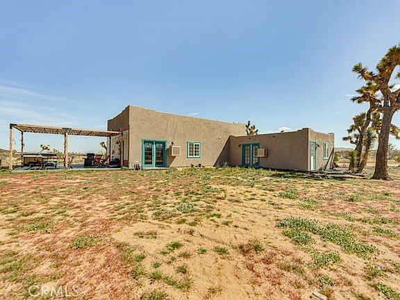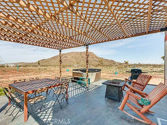This fully furnished 3 bed, 2 bath home with an open-concept layout with high ceilings and sleek concrete floors, offers modern touches with its rustic charm desert living. There are 2 bedrooms and 1 bath in the main house, and a separate 1 bed, 1 bath unit with it's own entrance—perfect for guests, mother in law, or rental income. Nestled right in front of Goat Mountain in Landers, enjoy stunning views and peaceful surroundings under the Milky Way and beautiful desert skies in the jacuzzi. 2 acres of the 5 acre parcel is fenced so that you ca have pets or kids can play without you worrying, and there is a tool shed and additional electrical panel for any future projects of expanding the property. La Copine, The Integratron, OHV area in Johnson Valley, Joshua Tree, Giant Rock, and more are just a few minutes drive, and there's a plethora of BLM land just out your back yard to the north east.