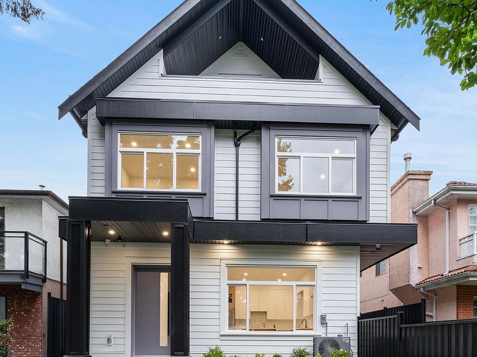 Brand new BACK UNIT duplex at 5873 Culloden Street in Vancouver’s Knight area. 2-5-10 WARRANTY. This modern home features 3 bedrooms plus flex, 3.5 bathrooms, and an open-concept layout with 10ft ceilings on main floor. ALL BATHROOMS ARE INSUITE. Enjoy a sleek kitchen with quartz countertops, GAS range, and stainless steel appliances, RADIANT HEATING and large windows for natural light. The spacious primary suite includes a walk-in closet and spa-like ensuite. AC with Heat Pump included. Close to memorial park & Track. Each unit comes with a private yard, 1 PARKING Garage, EV CHARGER. Located on a quiet street near parks, schools, shops, and transit. Perfect for families or investors OPEN HOUSE 10/4 SAT 2-4PM 10/5 SUN 2-4PM