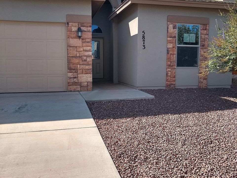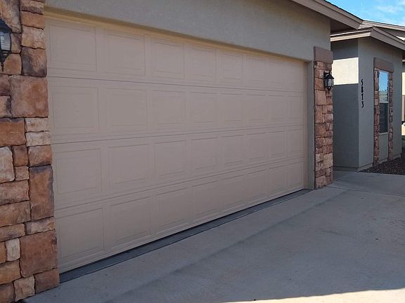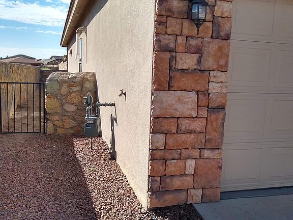 Open concept living area includes kitchen, dining area and family room. Master bedroom opposite of other bedrooms. Kitchen has granite counter tops. Low maintenance yard. Refrigerated air. Double car garage with garage door opener. High ceilings in common areas. Park is half a block away. Kids bedrooms are separated by washroom and bathrooms for quiet times. Safe neighborhood, near shopping, minutes from El Paso's West-side, I-10, Walmart, La Union Elementary, Santa Teresa Middle, and Santa Teresa High School. High backyard fence on two sides. City view from backyard.