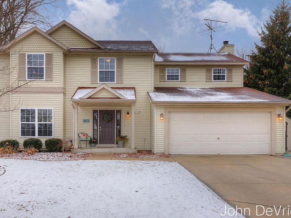 Welcome home to this private, quiet cul-de-sac two story in Grandville Schools. This property has been fully updated and is ready to move in and enjoy. The extras start with the private backyard with a two tiered deck, patio, and above ground pool all ready for entertaining with friends. Inside you will find 4 bedrooms on the same floor. The upper floor also has a master suite and another full bathroom. The main floor has two living areas. One next to the dining area and has a updated gas log fireplace. The dining area has a nice slider walkout to enjoy the previously mentioned perfect backyard. The lower level has been recently renovated to feature an open layout with kitchenette, full bath, rec room and plenty of extra storage. Take a look real soon before this home is sold.