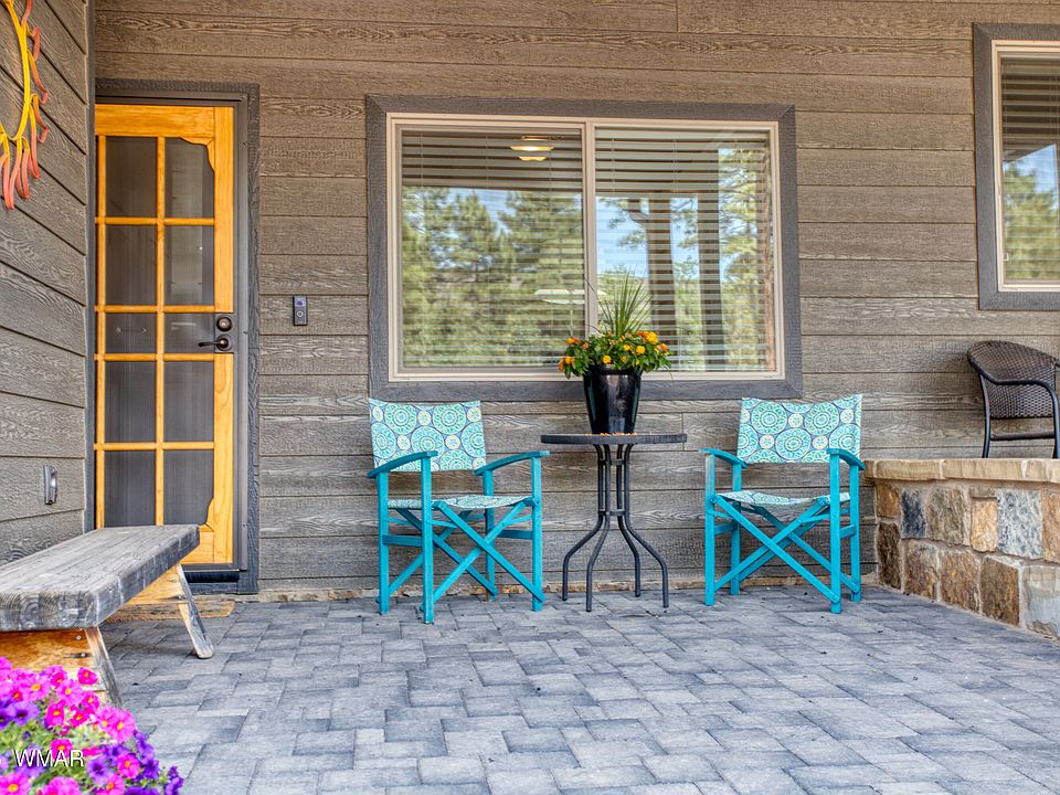 Step outside to enjoy Arizona's four seasons from two private patios: a west-facing paver front porch for morning coffee and an east-facing extended Trex back deck for afternoon happy hour, all surrounded by majestic oaks and pines. A paver driveway leads to your attached single-car garage, combining practicality with excellent curb appeal.