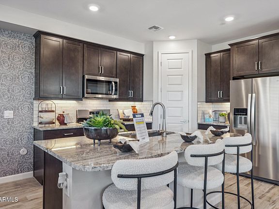 MODEL FOR SALE! This home comes with all the bells and whistles!! TURNKEY READY-JUST BRING YOUR TOOTHBRUSH! Our popular 'Little Rock' floorplan includes 3 bedrooms with a loft, 2.5 bathrooms, 2-car garage, and a private custom backyard! Designer selected finishes include Maple Ash Cabinetry w/Hardware, 3 CM Granite Kitchen Countertops, Wood-Look Tile, and Plush Carpet in bedrooms. Features include 8' Doors, Under Cabinet Lighting in Kitchen, Smudge-proof Stainless Appliances, Blinds, Soft Water Pre-Plumb, Smart Home tech, and EV charger Pre-Wire in Garage. This home as a beautiful custom built in accent walls and everything you could ask for! Act fast this home won't last long-PHOTOS OF ACTUAL HOME!