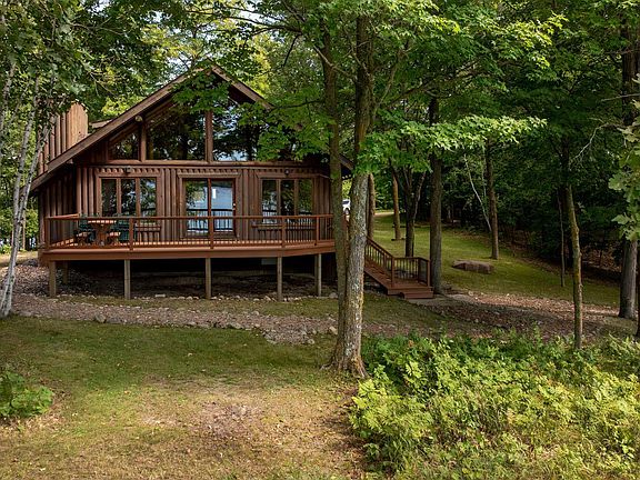 Discover the ultimate up-north retreat with this unique, once in a lifetime property on Long Lake by Longville. Offering 1,040 feet of pristine shoreline and over 2 acres of wooded privacy, this property is nestled at the very tip of a peninsula. providing unmatched seclusion, stunning lake views, and direct access to one of the area’s favorite lakes. Long Lake is well known for its depth, superb water clarity, and great fishing. Offering walleye, northern pike, trout, bass, and panfish, making it a true angler’s paradise right outside your front door. The property is covered with a variety of hardwood trees, enhancing the natural beauty and wildlife appeal. This chalet-style cabin features 4 bedrooms, 2 baths, and a full unfinished walkout basement, giving you plenty of room to expand or customize. Showcasing log accents inside and out, the home highlights beautiful natural woodwork throughout, anchored by a stone, wood-burning fireplace. The open floor plan and expansive lakeside windows flood the interior with natural light while offering panoramic views across the lake to National Forestry land that will never be developed. Enjoy the outdoors from the spacious deck, perfect for entertaining or quiet evenings taking in the views. A gently sloping woodchip trail leads to the hard-bottom shoreline and dock, making lake access ideal for swimming, boating, and fishing. Just minutes away, the charming town of Longville offers year-round activities and small-town charm—from the famous turtle races, farmer markets, restaurants, and boutique shops to nearby snowmobile and ATV trails, hiking and hunting in the Chippewa National Forest, and endless additional lakes to explore. Whether you’re looking for a year-round home or a seasonal getaway, this property offers the best of lake living, privacy, beauty, recreation, and a vibrant community just a short drive away. You don't want to miss the virtual tour on this one!
