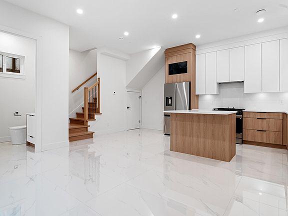 Brand new FRONT UNIT duplex at 5873 Culloden Street in Vancouver’s Knight area. 2-5-10 WARRANTY. This modern home features 3 bedrooms plus flex, 3.5 bathrooms, and an open-concept layout with 10ft ceilings on main floor. ALL BATHROOMS ARE INSUITE. Enjoy a sleek kitchen with quartz countertops, GAS range, and stainless steel appliances, RADIANT HEATING and large windows for natural light. The spacious primary suite includes a walk-in closet and spa-like ensuite. AC with Heat Pump included. Close to memorial park & Track. Each unit comes with a private yard, 1 CARPAD, 1 Garage PARKING, EV CHARGER. Located on a quiet street near parks, schools, shops, and transit. Perfect for families or investors OPEN HOUSE 11/2 SUNDAY 2-4PM