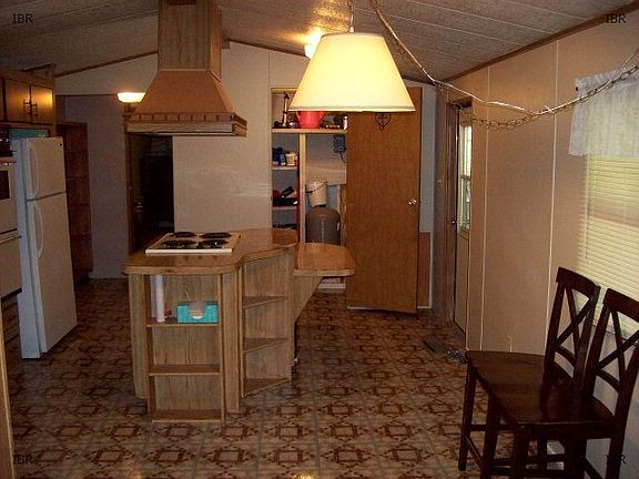 This singlewide, which is situated on a maturely-landscaped lot, has had many updates. There is a large, private, rear deck, and a detached, two-car garage.