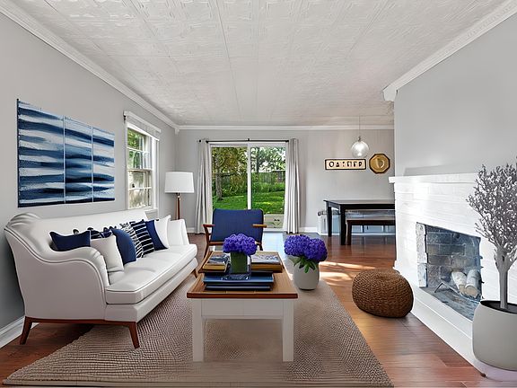 Experience the timeless charm of this Cape Cod-inspired home! You'll be greeted by beautiful wood floors that extend throughout the main and upper levels, complemented by crisp white trim that enhances the cottage-like atmosphere. The living and formal dining area boasts a cozy wood-burning fireplace, perfect for those chilly evenings. The kitchen has been thoughtfully updated with stainless steel appliances & elegant granite countertops.
