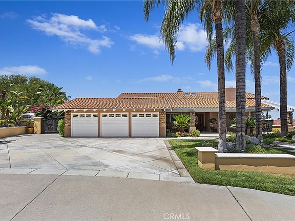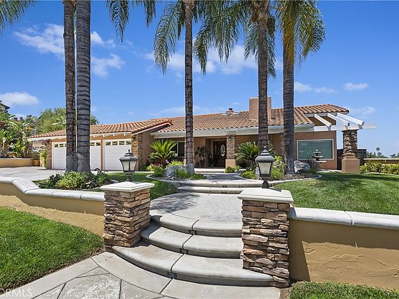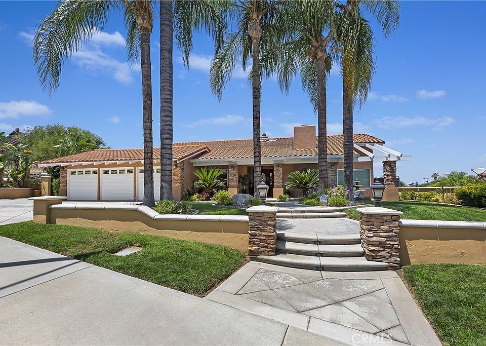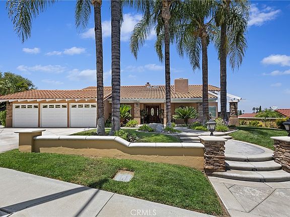 One of a kind Single Story Home in the much desired neighborhood of Canyon Crest with spectacular view of mountains, Mt. Rubidoux and City Lights, This home with its Spanish Mediterranean flare is definitely an entertainers delight. As you enter this lovely home off the front patio porch you're greeted with porcelain tiled floors, vaulted ceilings, a large living room with cozy fireplace and dining room area. Separate family room open to the kitchen. Many features include dual pane windows, recessed lighting, ceiling fans, granite counters, large master bedroom with sliding doors to the outside, master bath upgraded with Jacuzzi tub, newer hot water heater, 3 car garage with custom doors and gated RV parking. Fabulous landscaping!!! A backyard paradise with two patio areas, one a step up to better view the evening sunsets and distant lights, a Barbeque Island with built-in BBQ and additional bar and sink nearby, a large firepit to enjoy the cool evenings, wrought iron fencing, retaining walls and accent lighting on trees. A variety of trees include mature lemon, orange and grapefruit along with blueberries and beautiful Queen Palms. Two dramatic fountains front and back add to the ambiance of this home. There's plenty of room for a pool or an accessory dwelling unit. This home is two minutes to the Canyon Crest Country Club where you could enjoy golf, tennis and swimming. Parks nearby, shopping and freeways.
