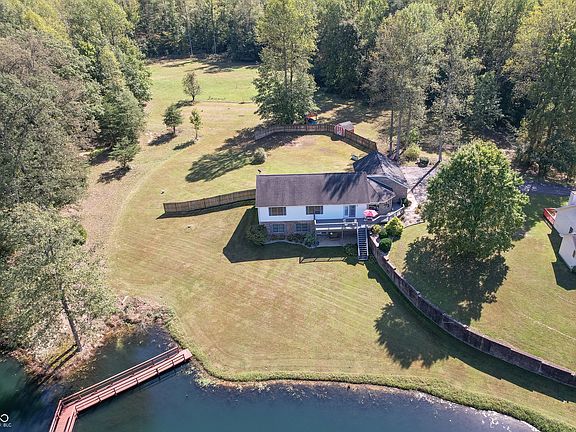 Conveniently located within 30 minutes to Seymour, North Vernon, Madison or Scottsburg in a private wooded setting, this spacious 5-bedroom, 2.5-bath country home features 3,200 sq ft of living space on a ONE-ACRE lakefront lot; enjoy watching the deer, wild turkey and birds from the large wrap-around deck overlooking the 3.5-ACRE lake; applianced kitchen with beautiful oak cabinets, eat-in bar & gourmet island opens into a spacious dining room; cozy sunroom off kitchen; master bedroom highlighted by a private bath and walk-in closet; FULL, WALK-OUT BASEMENT features a large family room with gas-log fireplace, 2 bedrooms and two large storage rooms; solid-wood 6-panel doors throughout the home; Andersen thermopane windows; Andersen storm doors NEW in 2021; partially-fenced backyard; irrigation system; 3-car attached garage; 9-minute drive to Interstate 65 for easy access to Louisville or Indianapolis.
