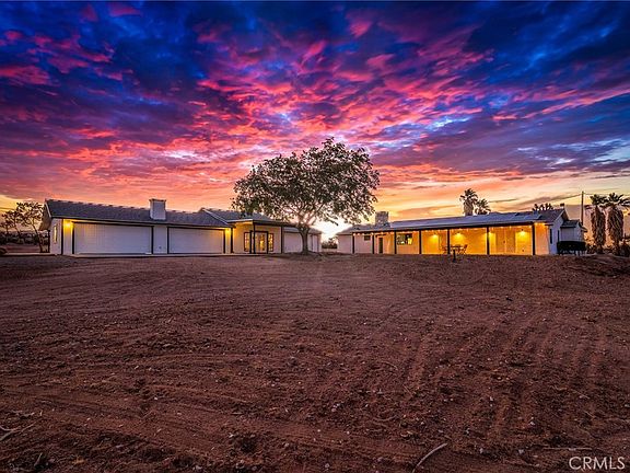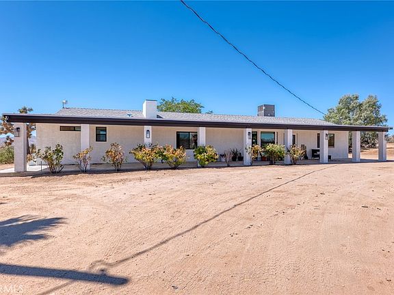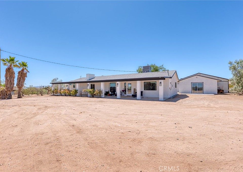 Welcome to your dream desert escape in the highly desirable Yucca Mesa neighborhood of Yucca Valley. This fully remodeled 3-bedroom, 3-bathroom home sits on a sprawling over 5 acres, offering space, privacy, and endless potential. This home features all-new everything; roof, electric HVAC, dual-pane windows, interior and exterior paint, luxury vinyl plank flooring, carpet in bedrooms, doors, and a brand-new septic and leech line system installed less than a year ago. Inside, you’ll find a bright, open layout with beautifully upgraded finishes throughout. The kitchen and baths are fully renovated with new cabinets, countertops, modern sinks, and stunning walk-in showers with glass enclosures and herringbone tile. The spacious primary suite offers a spa-like retreat with a rain shower head and serene desert views. Two sleek electric fireplaces add warmth and modern charm to the living areas. Outside, a massive detached 4-car garage includes an additional 1,060 sq ft of flexible space perfect for a home gym, workshop, or future conversion plus a full-length attic for hidden storage and a 50-amp RV hookup for added convenience. Multiple covered patios invite you to unwind and enjoy the quiet, star-filled nights with no light pollution. Whether you're looking to create a personal retreat, horse property, or simply enjoy wide open skies and peaceful living, this property delivers. Don’t miss the opportunity to own this one-of-a-kind desert gem with room to grow and explore all just minutes from Yucca Valleys amenities, Joshua Tree National Park, and more.