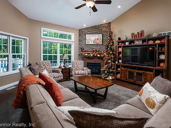 Built in 2016, this spacious open-concept split ranch offers over 2,055 sq. ft. plus a fully finished basement designed for versatile living. The main level includes 4 comfortable bedrooms, including a primary suite with a walk-in closet, as well as a modern granite kitchen with stainless steel appliances that flows seamlessly into the dining and family areas. The finished basement adds a 5th bedroom, full bathroom, second full kitchen, and large family room with abundant storage, making it ideal for guests or multigenerational living. Outdoor amenities include a 3-level deck with pool, covered patio, and built-in fire pit, while a 24x24 attached garage and convenient access to I-69 and I-94 add everyday practicality.