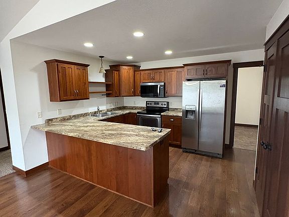 - Exterior features: Custom Cabinets, Deck/Patio, Energy Efficient Forced Air Furnace, Focus on Energy Certified Home, Gas included in rent, Microwave/hood, No Utilities included in rent, Open Floor Plan, Solid Core Doors, Stainless Steel Appliances, Upgraded Finishes, Water/Sewer with Fee $45. We will pay the city directly