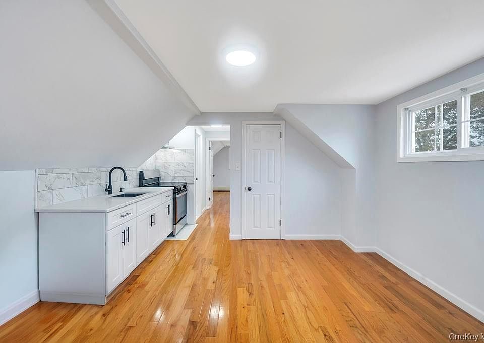 Charming one-bedroom apartment on the upper level of a Cape-style home. Features a modern eat-in kitchen with stainless-steel appliances and quartz countertops, a bright living room, and a stylish spotlight bathroom. The spacious bedroom offers comfort and plenty of natural light. Conveniently located near shops and transportation.