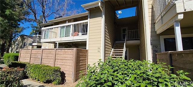 Beautifully remodeled Pear Tree Condo in San Dimas located across the street from the San Dimas Recreation Center & Sportsplex! This is a one level unit with entry on the 2nd floor. Features include: Extensive tile & wood laminate flooring, family room w/2 sided gas fireplace & upgraded slider door to balcony with views of the green belt & pool/spa area! Step saving kitchen w/granite counters, breakfast bar, stainless steel appliances, and separate dining area. Master bedroom w/walk-in closet plus an upgraded slider door to balcony, and the Master bathroom has an upgraded vanity too! There are 2 secondary bedrooms as well with mirrored wardrobes! Other features: Pull down ladder up to attic with ample storage, All windows have been upgraded to dual pane windows including the slider balcony doors, & the AC + Furnace have been upgraded! There's also a 2 car attached garage!!! This is a great interior location within the community that is only steps away from the community pool & spa!