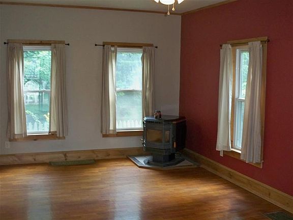 Wonderful country farmhouse on 1.32 acres neighboring a beautiful horse farm. Just minutes away from Oneonta and Cooperstown, this property has many great features including a large flat yard, patio (grill, table & chairs stay), a 1 car detached garage with electric and overhead storage and even a stream. The home features a large formal dining room with a gas fireplace, spacious living room with a pellet stove and a cute eat-in kitchen nook and a sun room.