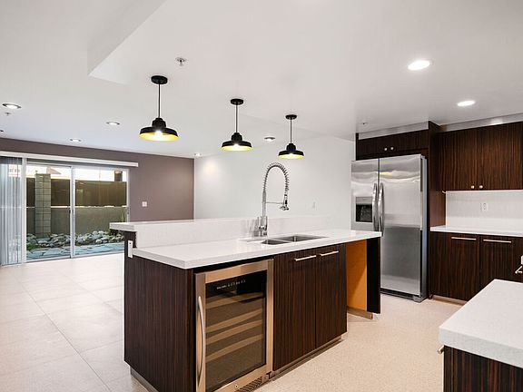 Private waterfallVibrant mid-century modern finishesPrivate patiosTranquil koi pondKeyless smart lock entryTerrazzo-inspired tileStainless steel appliances