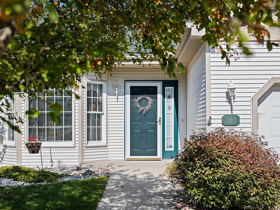 ELK RAPIDS CONDO – Immaculate 2 bedroom, 2 bath condo in the highly desired Meadowview Commons community with views of the Elk Rapids Golf Course. Situated on an extra-large corner lot that backs up to a large grassy common area for peaceful living. Spacious bedrooms and large living space. Private master suite with walk-in closet. Vaulted ceiling, gas log fireplace, new gas range. 2-car attached garage with water spigot, workbench, and large storage closet. Barrier free unit. Covered front porch and back patio area. HOA dues cover landscaping, plowing, roads, exterior unit maintenance, trash removal, etc.