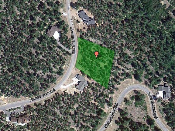 Oversized lot in Edgemont Highlands. Located near the end of the very desirable Monarch Crest Trail, this 1.2 acre parcel offers southern exposure, underground utilities, tall pines, and paved access all the way from town. Most neighboring homes on this road are valued at over $800,000. Central water, central sewer and natural gas are all at the lot line.