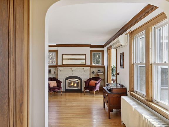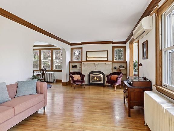 Absolutely charming storybook home with gorgeous front gardens just two blocks from the Mississippi River! Lovely location with easy access to parks and walking paths, restaurants, shopping, and more. This home features a true 4 bed/2 bath layout with nicely sized bedrooms and bathrooms on each level. Great character and cozy feel with original wood floors, natural woodwork, gas fireplace, fantastic sunroom, and good flow. The 2 car garage, fully fenced yard, and private feeling back yard space are wonderful bonuses for this area. High ticket upgrades include: sewer line (2020), electrical (2023), and plumbing (2023). Excellent potential to add square footage in the unfinished basement. Don't miss this outstanding opportunity to own a home with potential to grow in this phenomenal area!