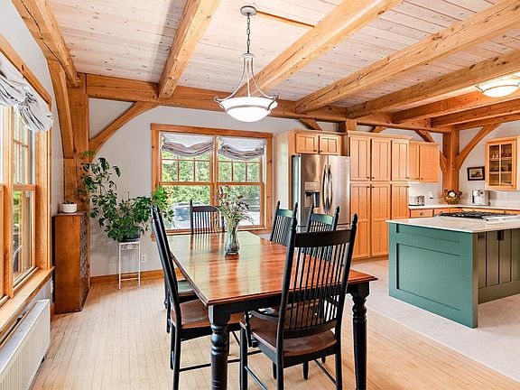 On Round Barn Road, this distinctive post-and-beam home sits on 2.1 acres, combining rural beauty with a location that keeps you connected to nearby towns and amenities. From the moment you step inside, you’re welcomed by soaring vaulted ceilings and an abundance of character that sets this home apart! Enjoy many thoughtful updates including the recently renovated kitchen, addition of a rear deck, and roof replacement (2020). The living room flows naturally to a tranquil back deck, complete with an included solar shade - ideal for relaxing outdoors. A home office and a convenient half bathroom round out the first floor. Upstairs, the primary suite impresses with a grand vaulted ceiling, storage loft above, and two custom reach-in closets. The luxurious en suite bathroom features an air jetted soaking tub and step-in shower, creating a private retreat. The second floor also offers another comfortable bedroom, full bathroom, and den that is the third bedroom. A unique loft area, accessed by ladder, adds a playful architectural touch, while VELUX motorized shades allow you to easily adjust the natural light from the skylights. Outside, the front yard boasts a fruit-bearing peach tree, mature landscaping, and established perennials framed by natural shade. The large backyard provides even more room to enjoy the outdoors! Conveniently located between Shelburne, Vergennes, and nearby state parks!