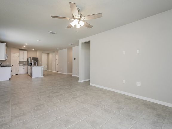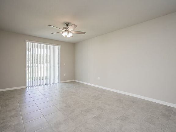 This Saint Cloud rental home provides 1,695 square feet of space with three bedrooms and two bathrooms. Enter the foyer and walk past the family room into the open plan living room, dining room, and kitchen. The living room sports a ceiling fan/lighting fixture, and its sliding glass doors open to the covered patio and grassy yard. Lit by bright, recessed ceiling lights, the kitchen has beautiful salt and pepper counters, a double stainless steel sink with a gooseneck faucet, and a closet that you can use as a pantry. The main bedroom features an en-suite bathroom and a separate walk-in closet, while the private bathroom sports a convenient walk-in shower and dual-sink vanity. Schedule a tour of this house today.