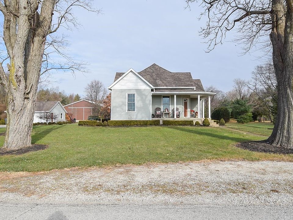 Must See!! Country living and yet minutes to Muncie. 3 BR/2 BA home on river in Delta Schools. Completely updated and well maintained. Hardwood flooring throughout. The eat in kitchen has custom cabinets and countertops with a gorgeous view to the back yard. Master bedroom includes full bath with a tiled walk-in shower. Large 27 X 18 open concept bedroom upstairs provides room for several beds or could be used for many other purposes. The house has California corners, newer windows, a pantry, and laundry room. Sit out on your 24X12 concrete patio with hot tub and enjoy the professionally landscaped view. There is also an 18 foot above ground pool, or you can enjoy the backyard firepit overlooking the river while listening to the fish jump and watch the otters play. Very large 80 X 60 pole barn with Heat and A/C. The barn has 3 main sections with concrete floors; center bay is temperature controlled with floor drains and the other two sides are cold storage. There are three 14-foot doors, built in storage, man cave with a bar/game room, full bath with tiled walk-in shower, and an additional office/bedroom. Possibilities are endless for this beautiful home and barn with over 3 acres it could be your new entertainment venue, hobby farm or business.