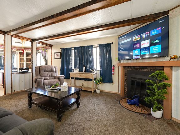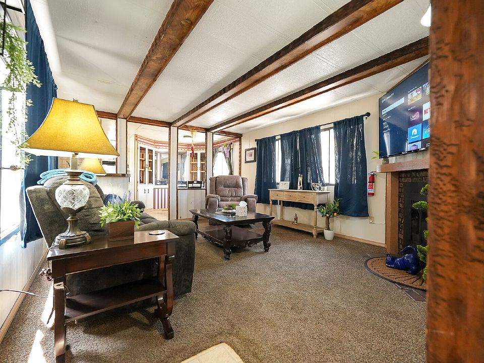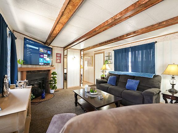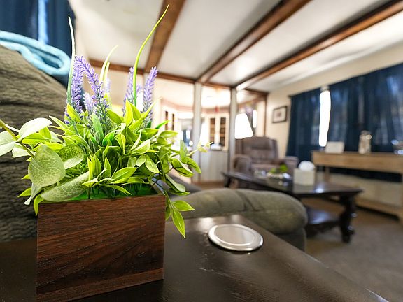 This delightful mobile home offers two spacious bedrooms and two full bathrooms, providing a comfortable and practical living space for your stay. The open-concept layout connects the living room, fully equipped kitchen, and dining area, creating a bright and functional flow throughout the home. With a well-stocked kitchen, comfortable living space, and thoughtful layout. This mobile home delivers both comfort and simplicity.