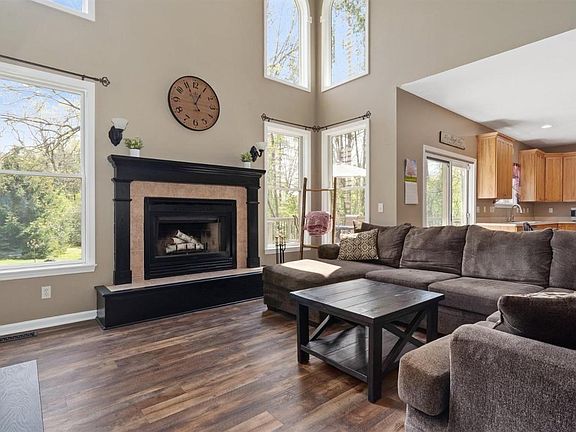 Nestled off the beaten path in a quiet country setting is this fabulous custom built home with light filled living spaces, a charming front porch perfect for relaxing and watching nature. You will absolutely love the privacy of this 1 acre lot perfect for hosting parties or just a quiet evening by the bonfire. It's your perfect up north retreat close to everything Ann Arbor has to offer and with city water, low township taxes and no HOA. The main floor features a quiet guest suite and a spacious office/study. The great room with soaring ceilings and gas fireplace flows into the kitchen/breakfast area with Maple Shaker cabinets and stainless appliances. The formal dining room with shiplap walls and a huge bank of windows round out the main floor. Upstairs you will find the primary suite with large soaker tub and separate shower and dual vanity and 2 additional bedrooms sharing a Jack-n-Jill bath. But the cherry on this cake is the stunning finished lower level featuring a built in bar a