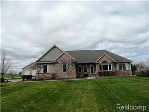 This totally Custom built ranch home offers most every amenity imaginable on 5 acres with a 64x40 pole barn. Home was built in 2001 but since has been updated. Exquisite elegance as your enter w/open floor plan, volume ceilings & hardwood floors thru-out. Library/Den, Great room w/fireplace & open to the kitchen w/massive windows viewing the picturesque property. Formal dining w/coffered ceiling, Gourmet kitchen w/designer cabinets, granite, snack counter, new stainless appliances, and dinette. Split bedroom floor plan, Master bedroom w/sitting area, walk-in organizer closet, luxurious master bath w/whirlpool tub, shower w/dual shower heads, dual vanity & custom tile. 2 other Jack & Jill bedrooms tile bath dual vanities, whirlpool tub & shower. The ultimate 3 car garage w/epoxy floors & in-floor radiate heat. Full walkout basement, Geothermo Heat. The 64x40 barn has overhead doors to fit a motor home, 14'6" ceiling, 200 electric, insulated & heated w/a 36x12 shed. Minimum EMD $6500.