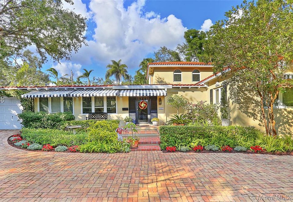 Perfect home for discerning buyers that require elegance, quality materials and a great location. Fully renovated with an addition in 2006. The addition features a serene, private master suite with bay window, sitting area and a magnificent library/living room. High ceilings, huge windows, floor to ceiling maple book cases, 2 sets of french impact doors with retractable screens. Large eat-in kitchen w/ custom maple cabinetry, gorgeous marble and mosaic tile floors, Xenon lighting, open shelving. Maple and oak hardwood floors. Dining room, Laundry room. Built in closets. Features: Dornbracht, Franke, Viking, Thermador, Hans Grohe and more. Whole house generator, all impact windows and doors. Only the best fixtures, finishes and appliances. Wonderfully suited for entertaining.